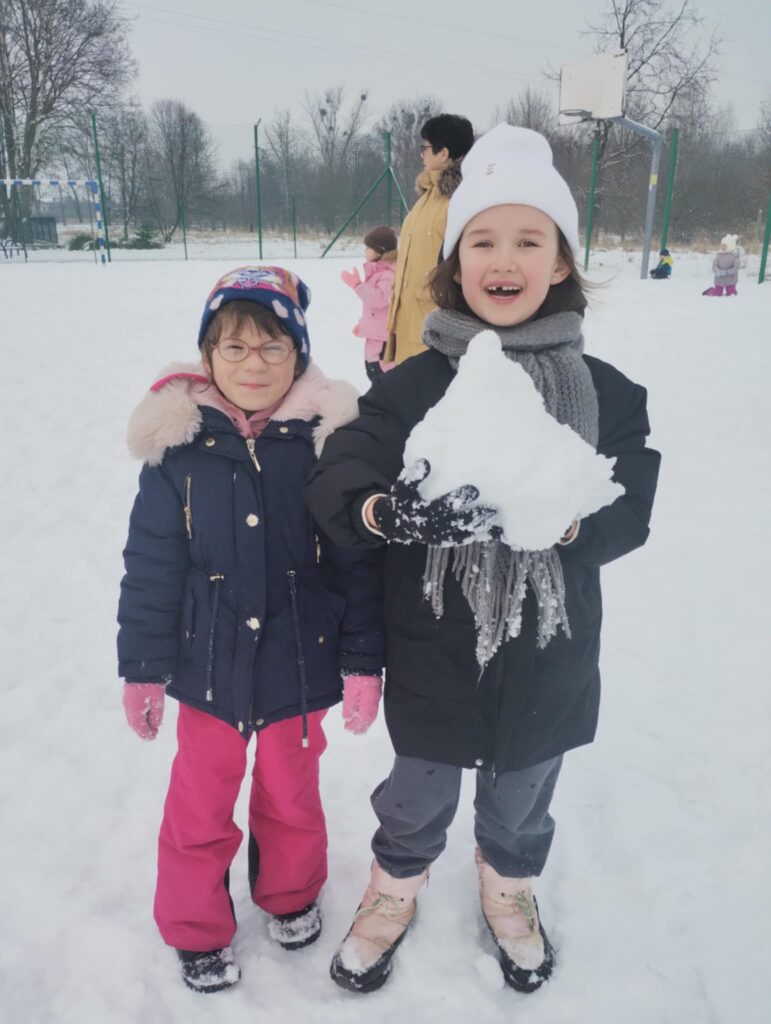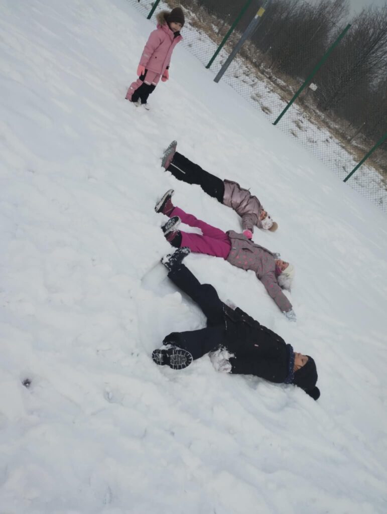 Utrwalaliśmy związane z upływem czasu nazwy pór roku, miesięcy i dni tygodnia. Wykonaliśmy też piękne prace plastyczne- zegary. Ale najwięcej radości sprawiły nam zimowe zabawy na śniegu.