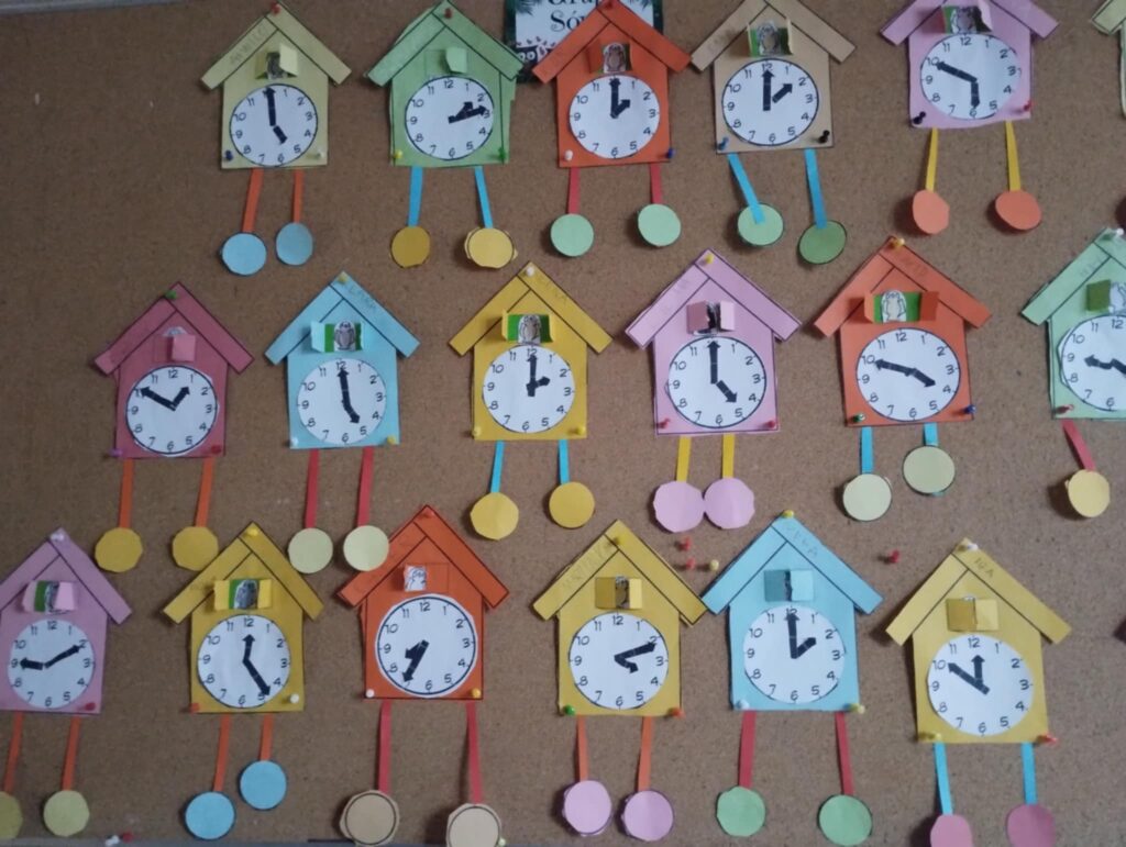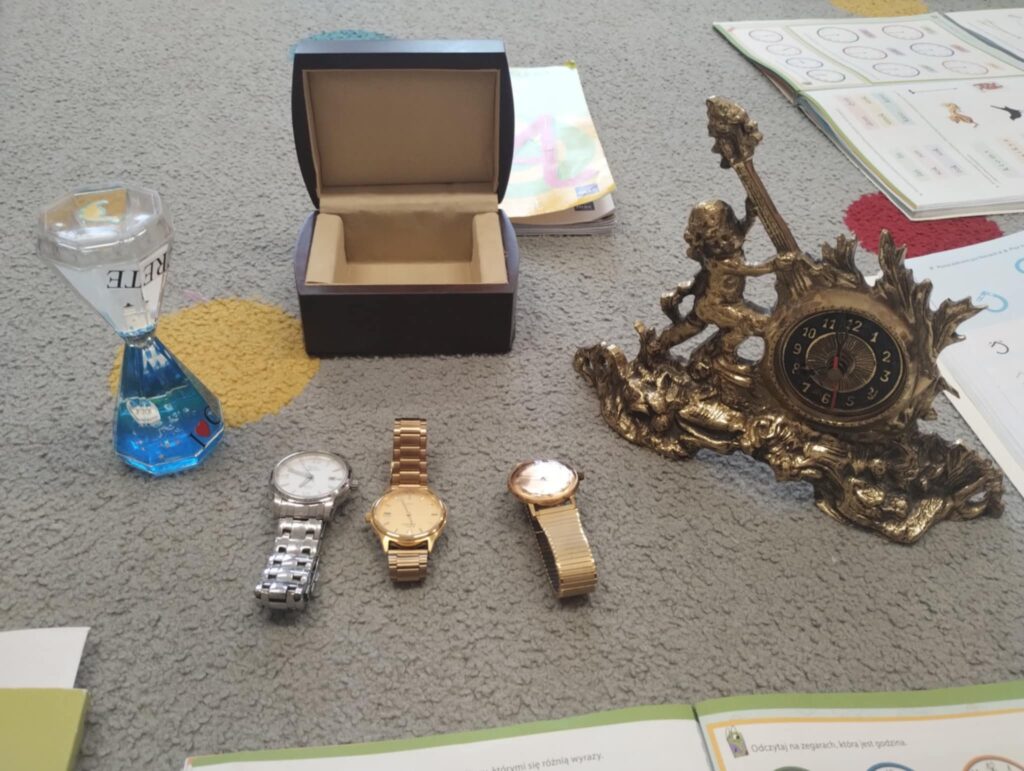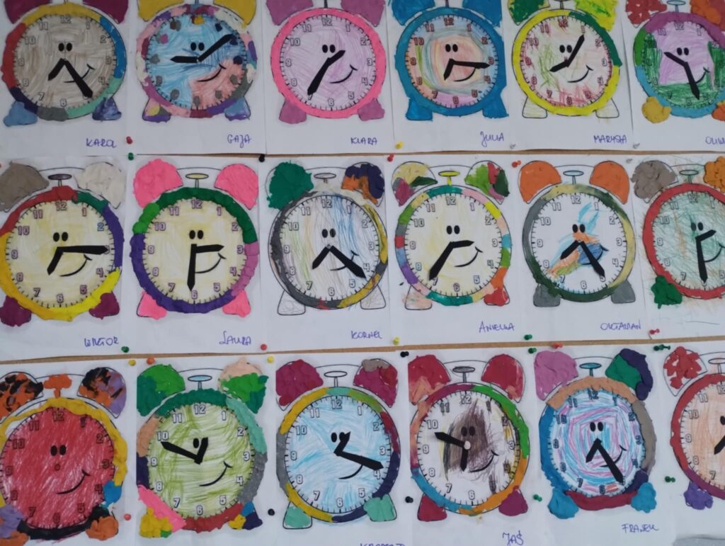 Nowy tydzień w przedszkolu upłynął nam pod hasłem: „Tak mija nam czas”. Poznaliśmy pracę zegarmistrza, oglądaliśmy różne rodzaje kalendarzy i zegarów oraz urządzeń, którymi dawno mierzyło się czas.