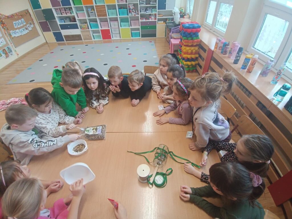 CO SŁYCHAĆ W PRZEDSZKOLU? 19-23 STYCZNIA 2026 Posted on 26 stycznia 202626 stycznia 2026 by Monika Boratyńska W tym tygodniu dzieci wzbogaciły swą wiedzę na temat zwierząt i ich sposobów na przetrwanie w ten zimowy czas. Poznaliśmy też pracę leśniczego, rozpoznawaliśmy tropy zwierząt i szykowaliśmy smakołyki dla ptaszków, które odwiedzają nasz karmnik. 7654321151413121110