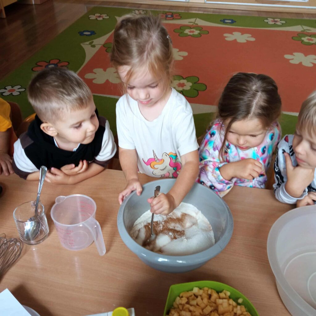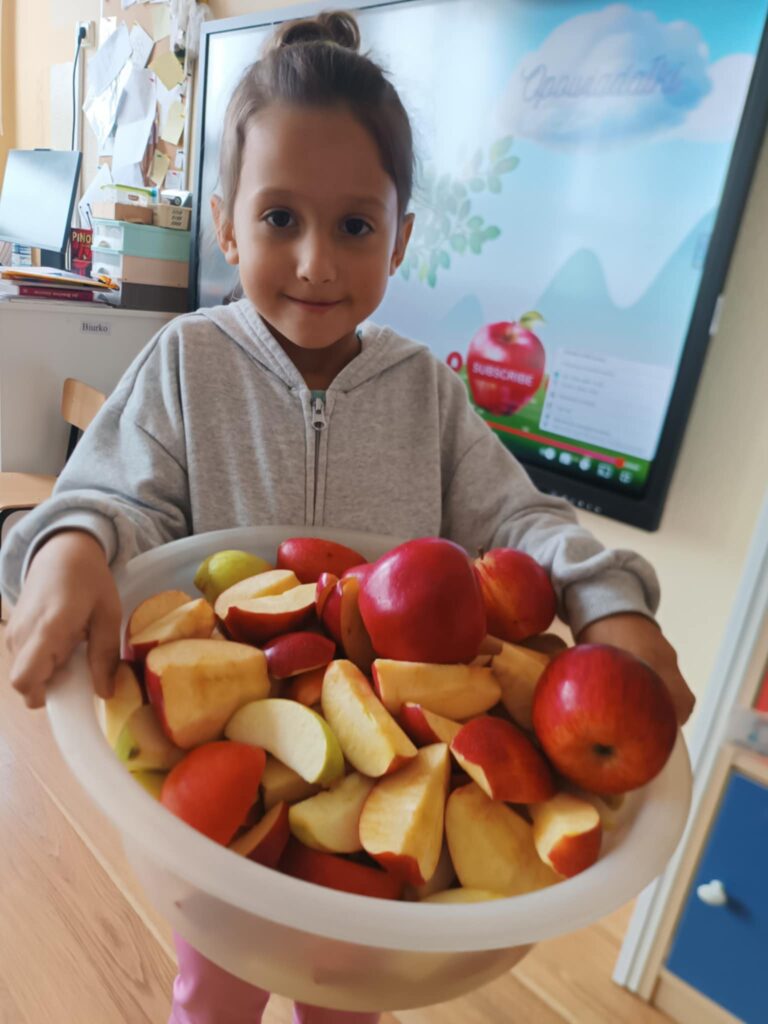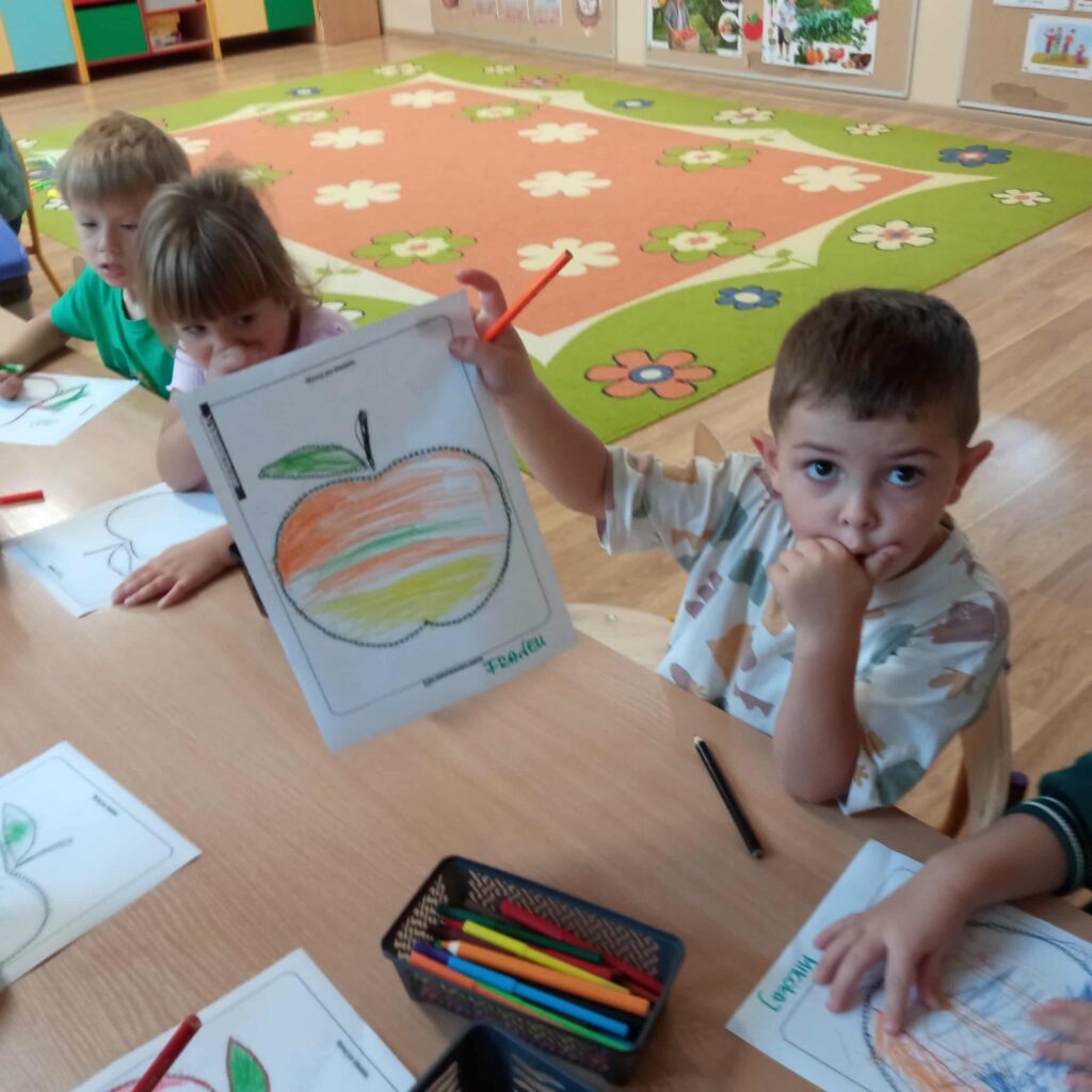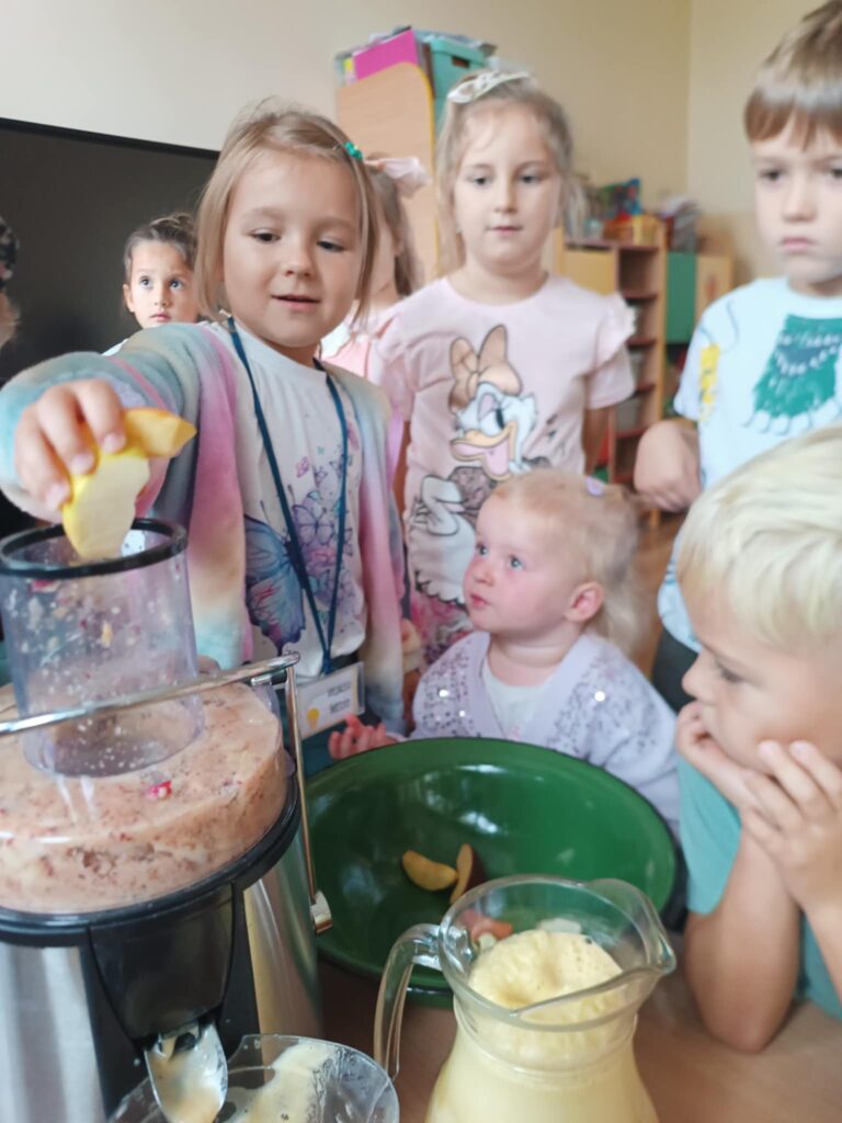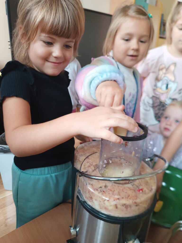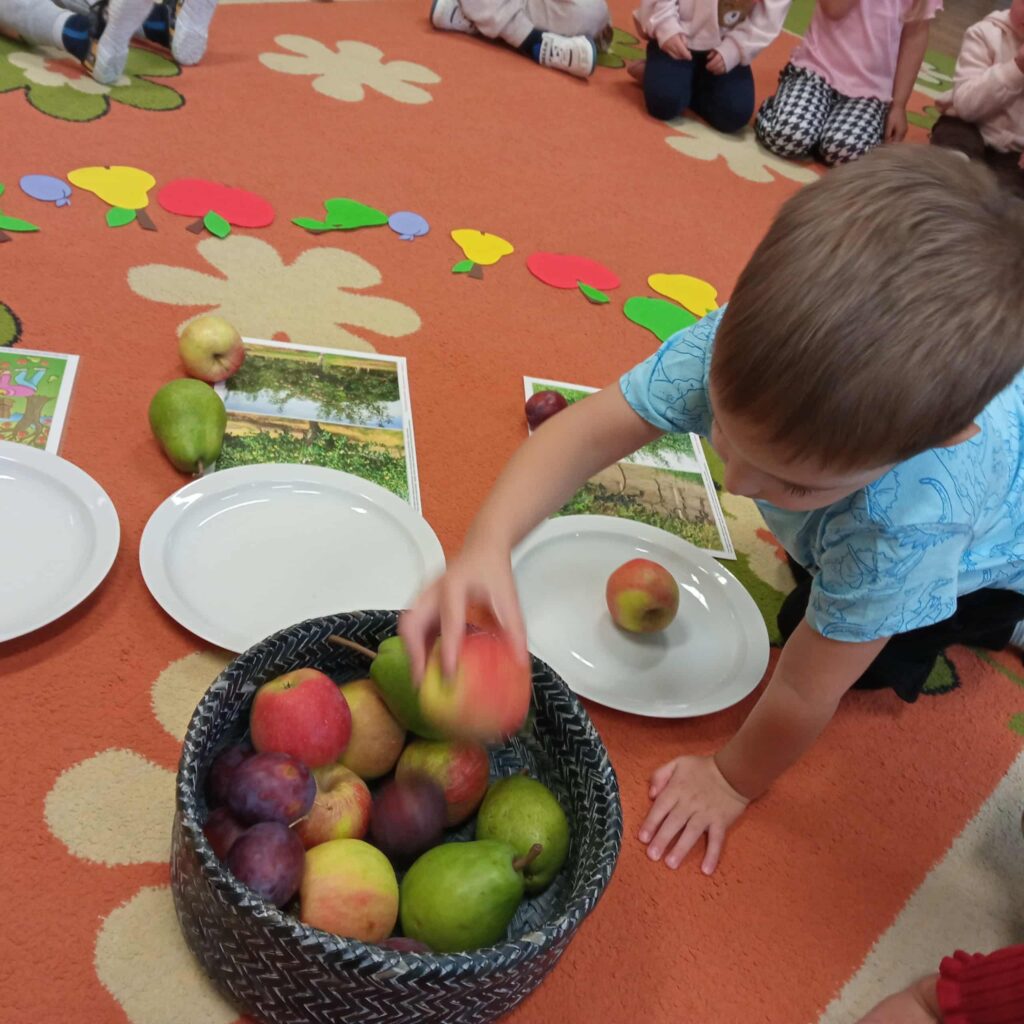 W tym tygodniu przedszkolaki poznawały dary jesieni z sadu i ogrodu, nazywały je i smakowały. Dzieci zrobiły sok jabłkowy, upiekły pyszne jabłkowe babeczki i samodzielnie wykonały surówkę z białej kapusty.