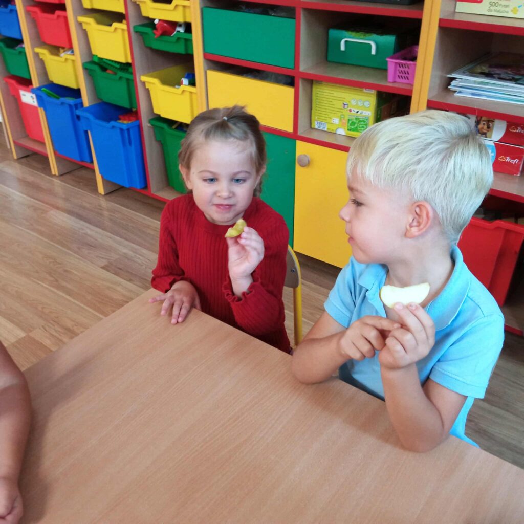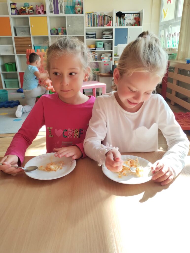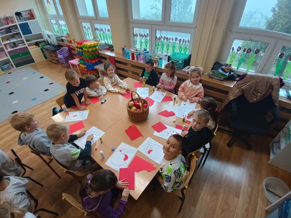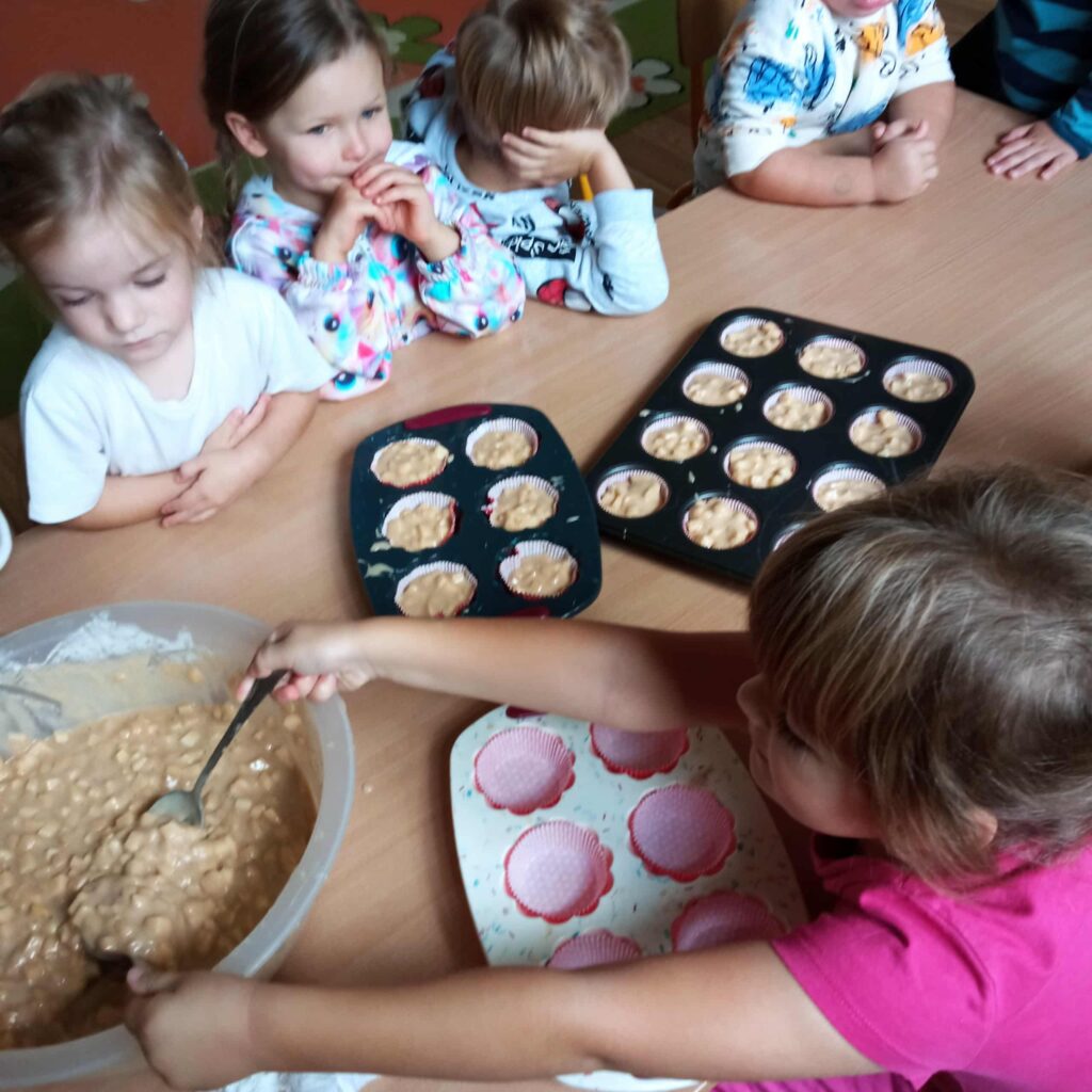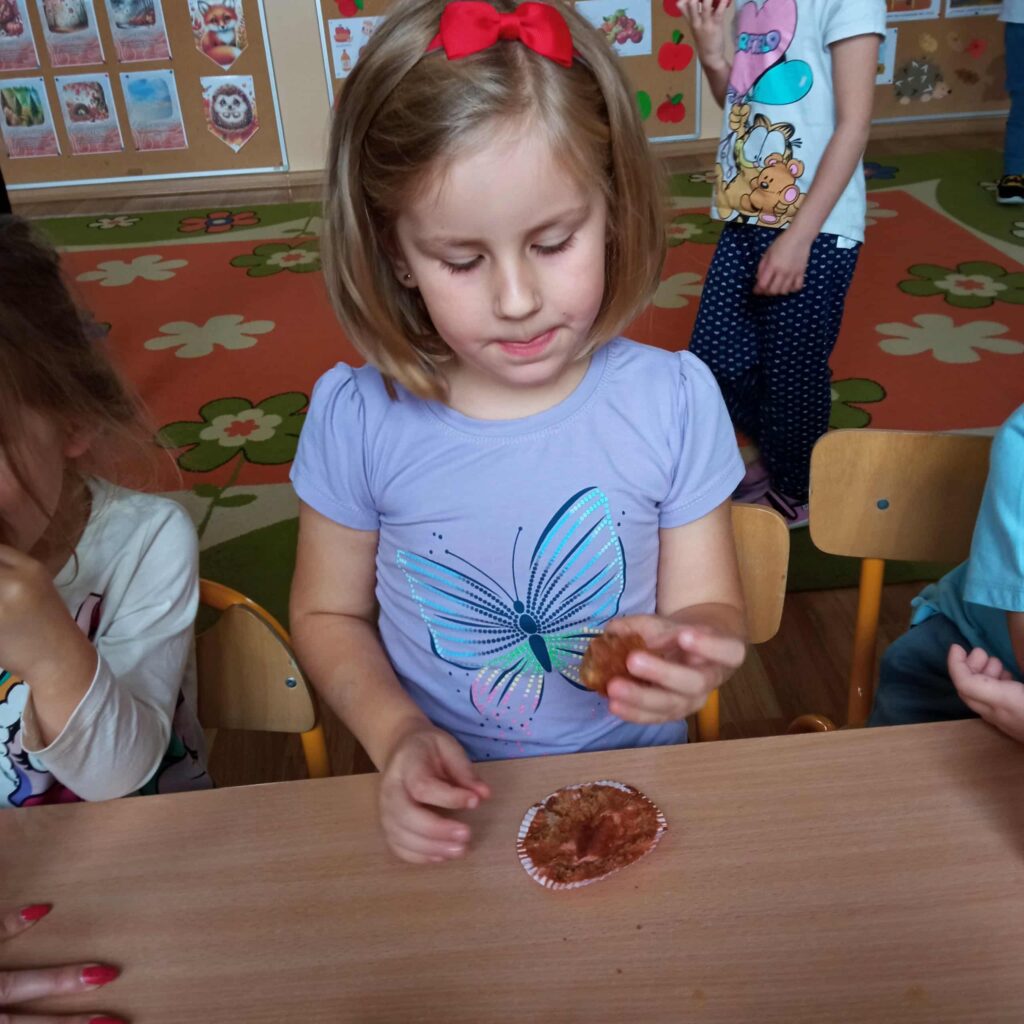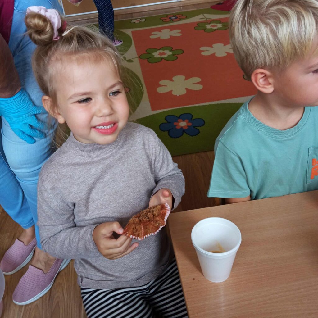 W tym tygodniu przedszkolaki poznawały dary jesieni z sadu i ogrodu, nazywały je i smakowały. Dzieci zrobiły sok jabłkowy, upiekły pyszne jabłkowe babeczki i samodzielnie wykonały surówkę z białej kapusty.