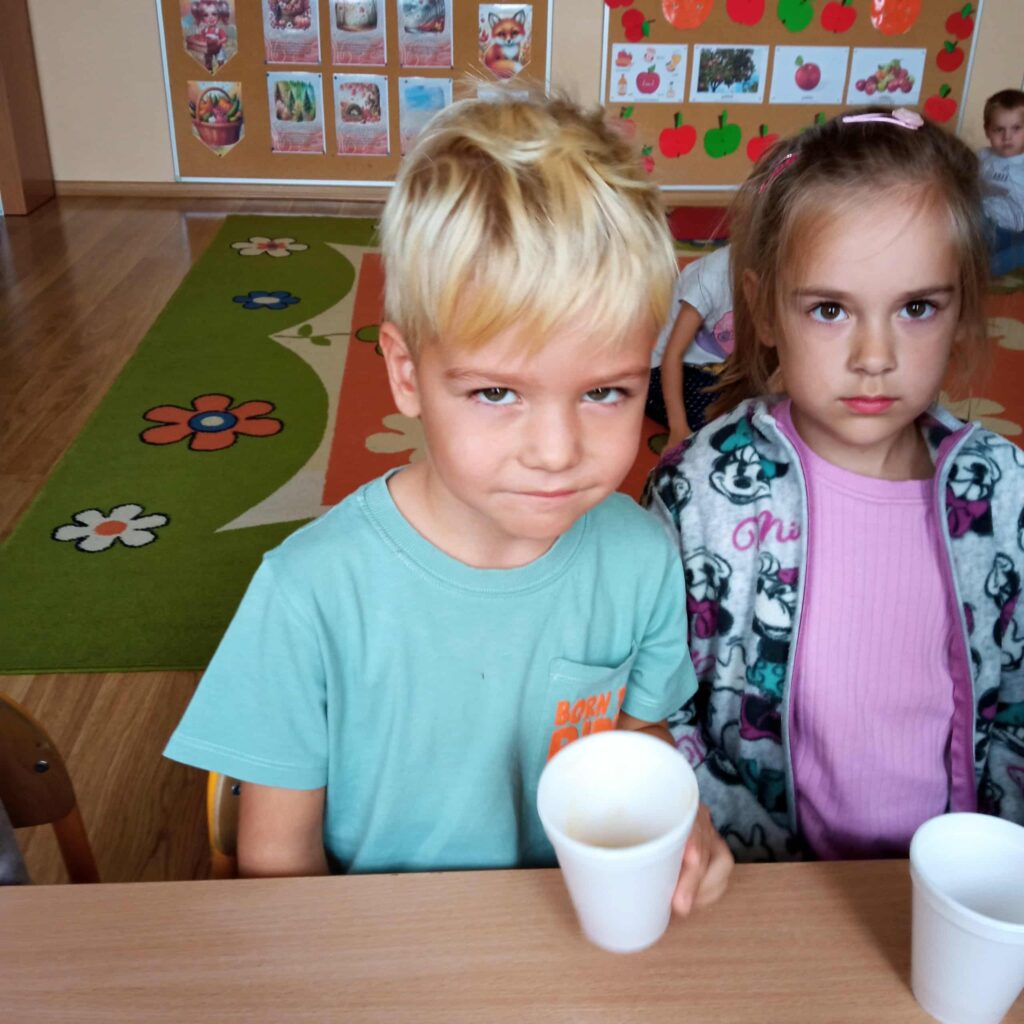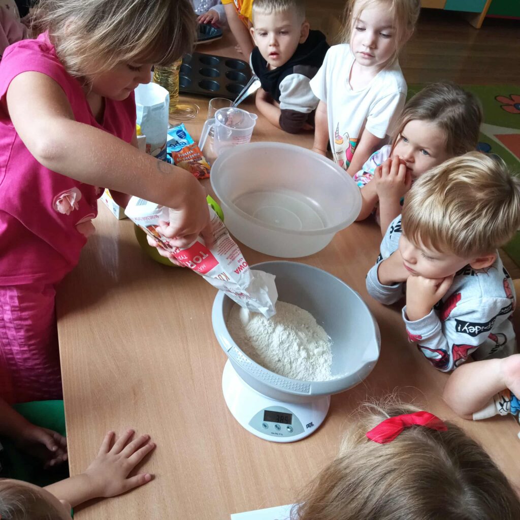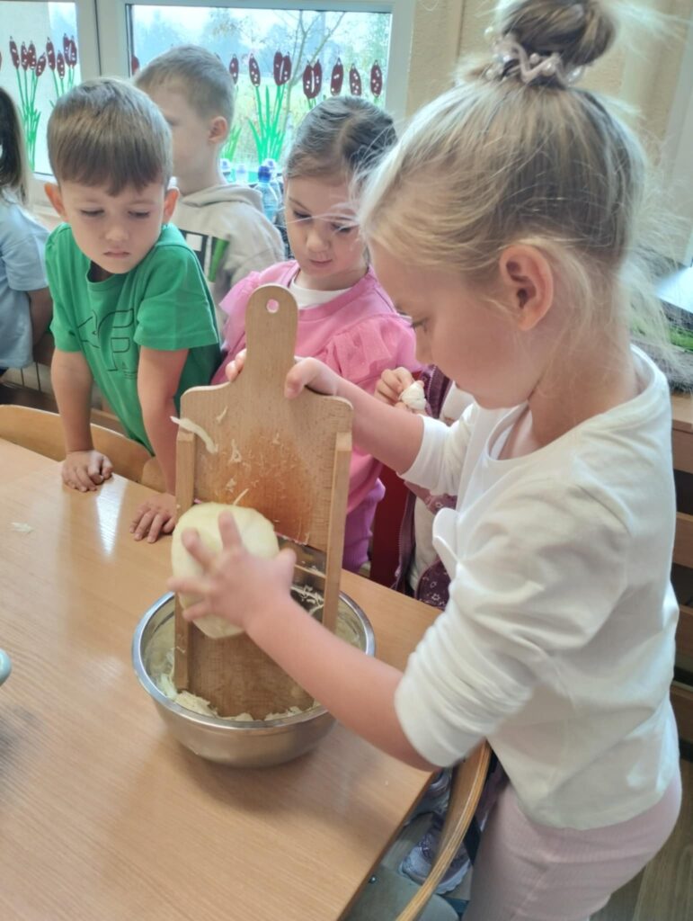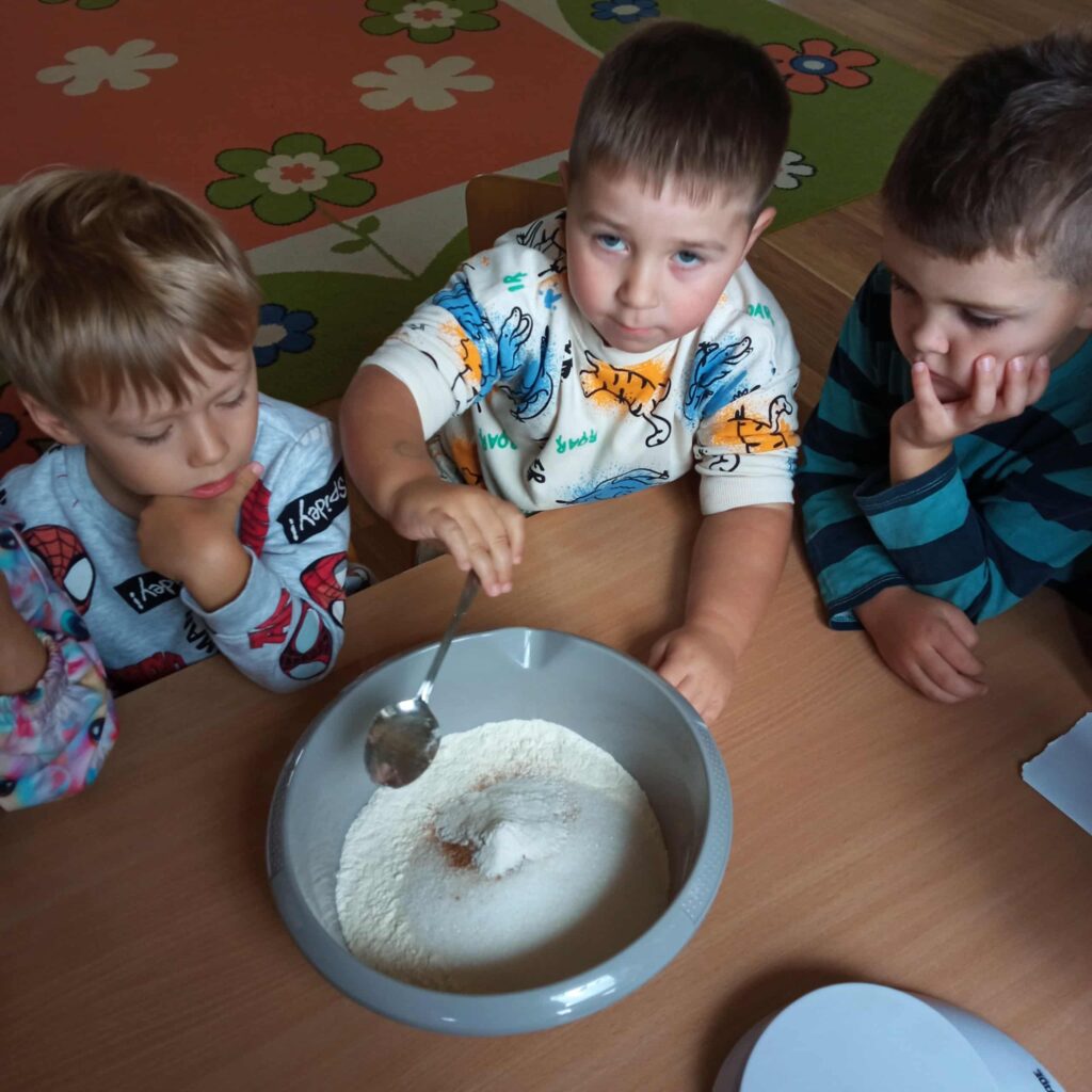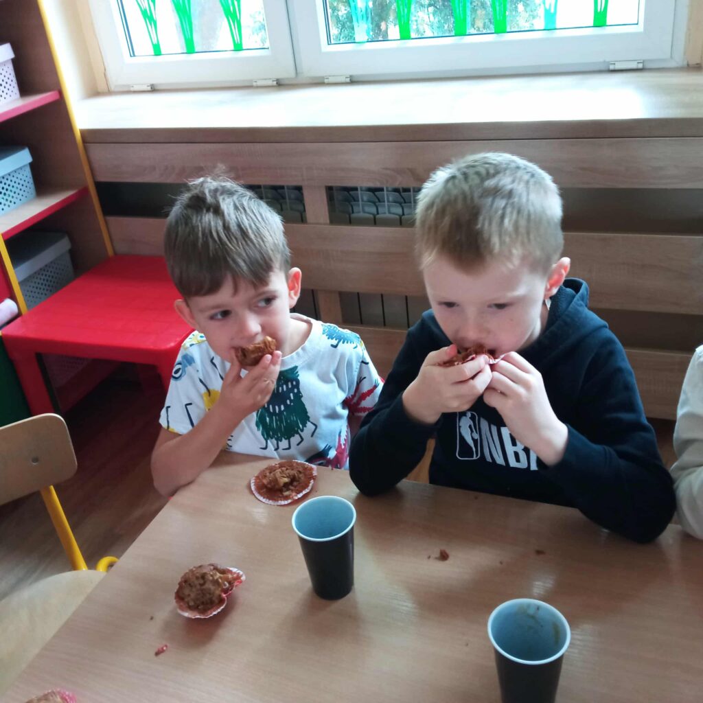W tym tygodniu przedszkolaki poznawały dary jesieni z sadu i ogrodu, nazywały je i smakowały. Dzieci zrobiły sok jabłkowy, upiekły pyszne jabłkowe babeczki i samodzielnie wykonały surówkę z białej kapusty.
