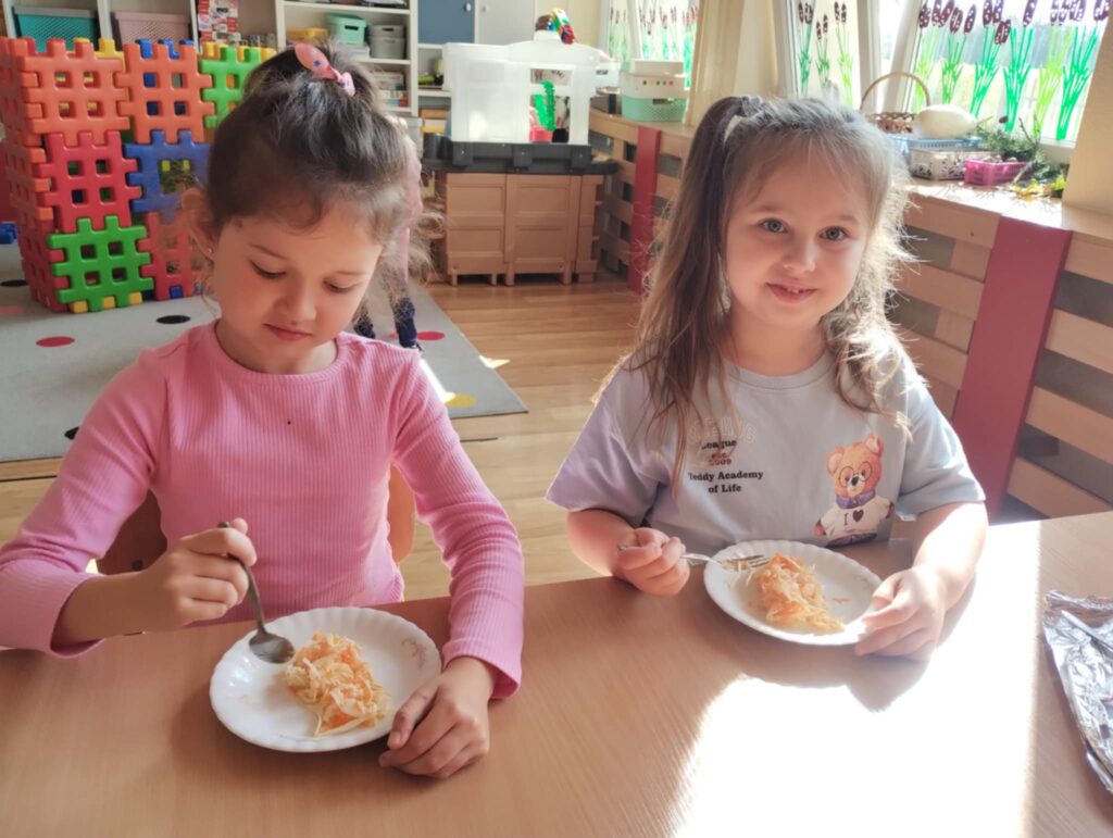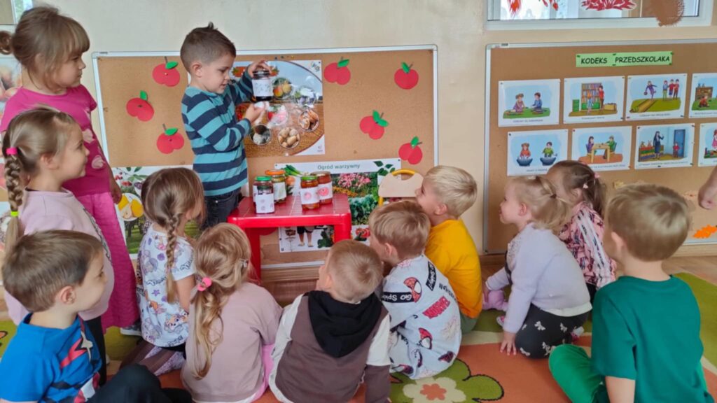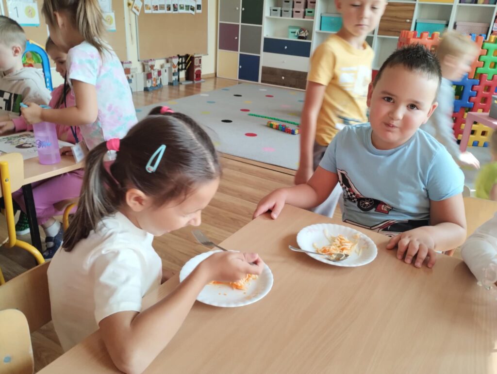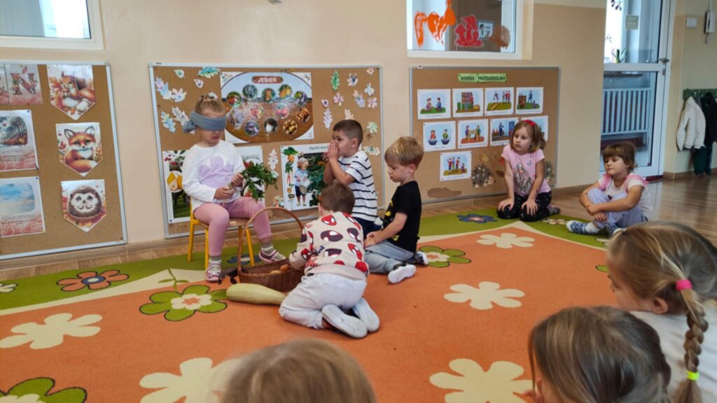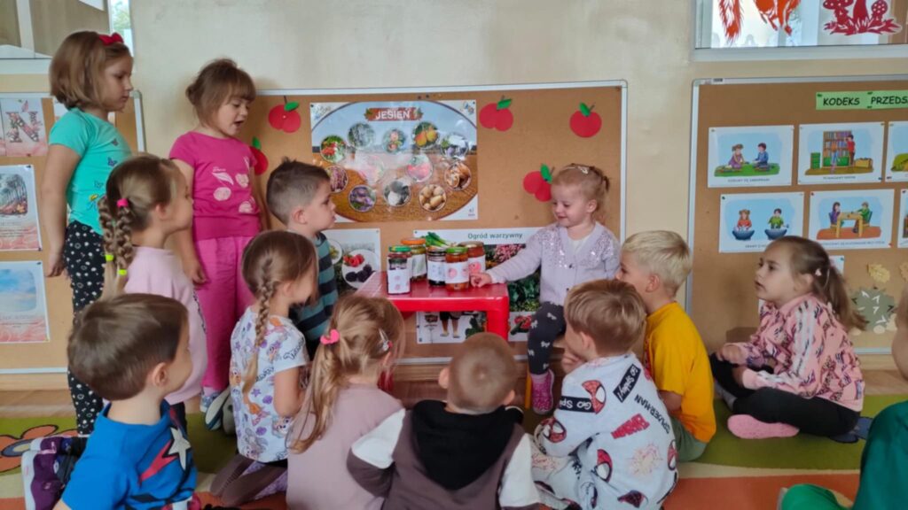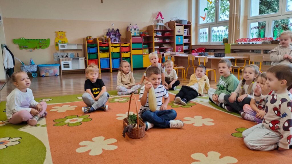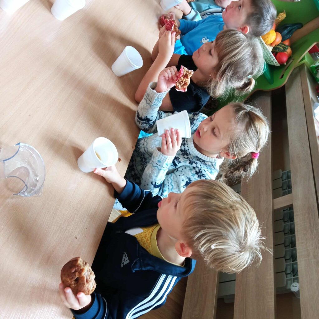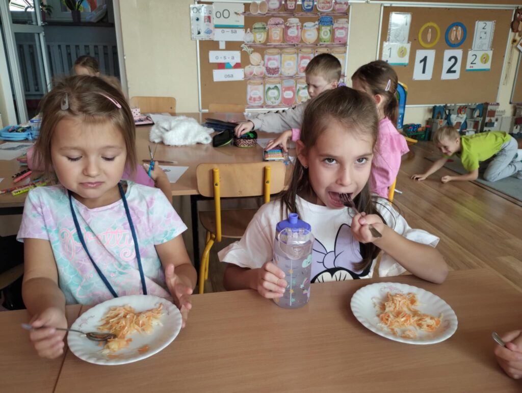 W tym tygodniu przedszkolaki poznawały dary jesieni z sadu i ogrodu, nazywały je i smakowały. Dzieci zrobiły sok jabłkowy, upiekły pyszne jabłkowe babeczki i samodzielnie wykonały surówkę z białej kapusty.