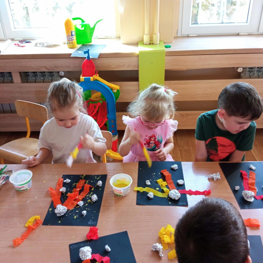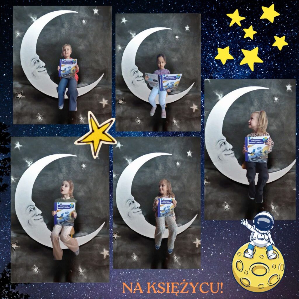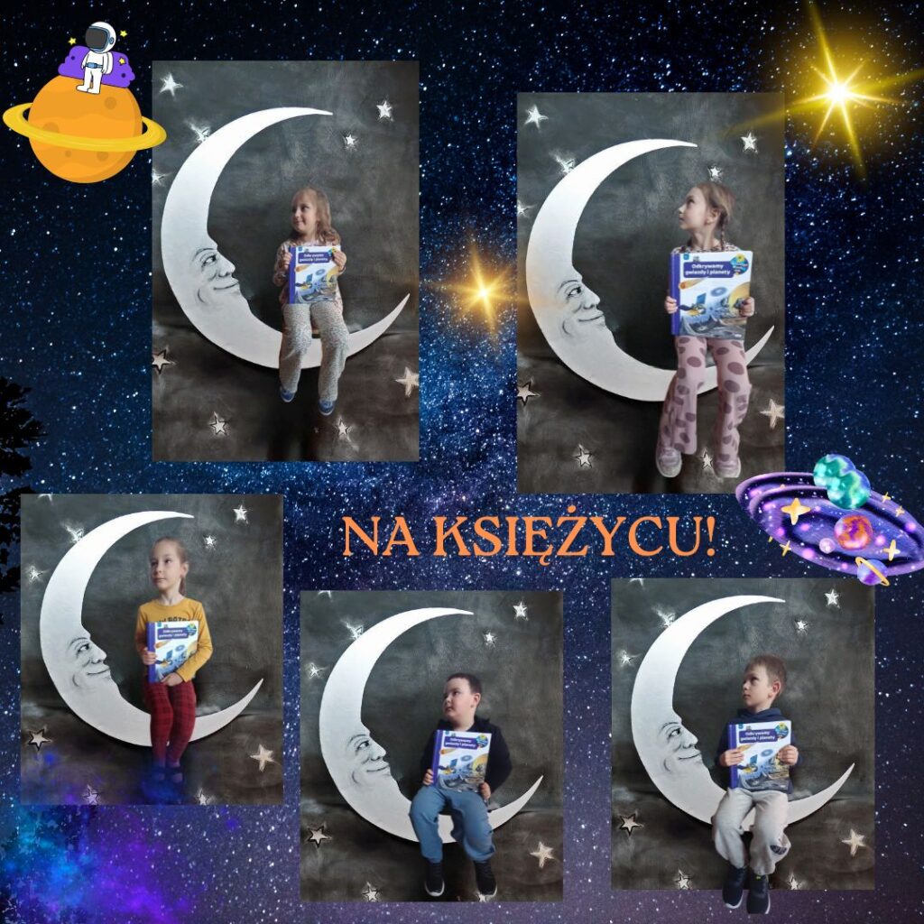 W tym tygodniu przedszkolaki utrwalały znajomość nazw planet Układu Słonecznego, poznały pojęcia związane z kosmosem (np. łazik, astronauta, Droga Mleczna itp.). Wykonały też ciekawe prace plastyczne i obejrzały ciekawy program popularnonaukowy o zjawisku występowania dnia i nocy.