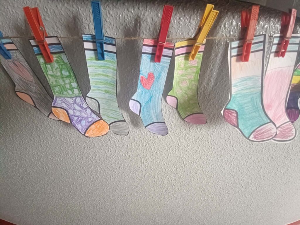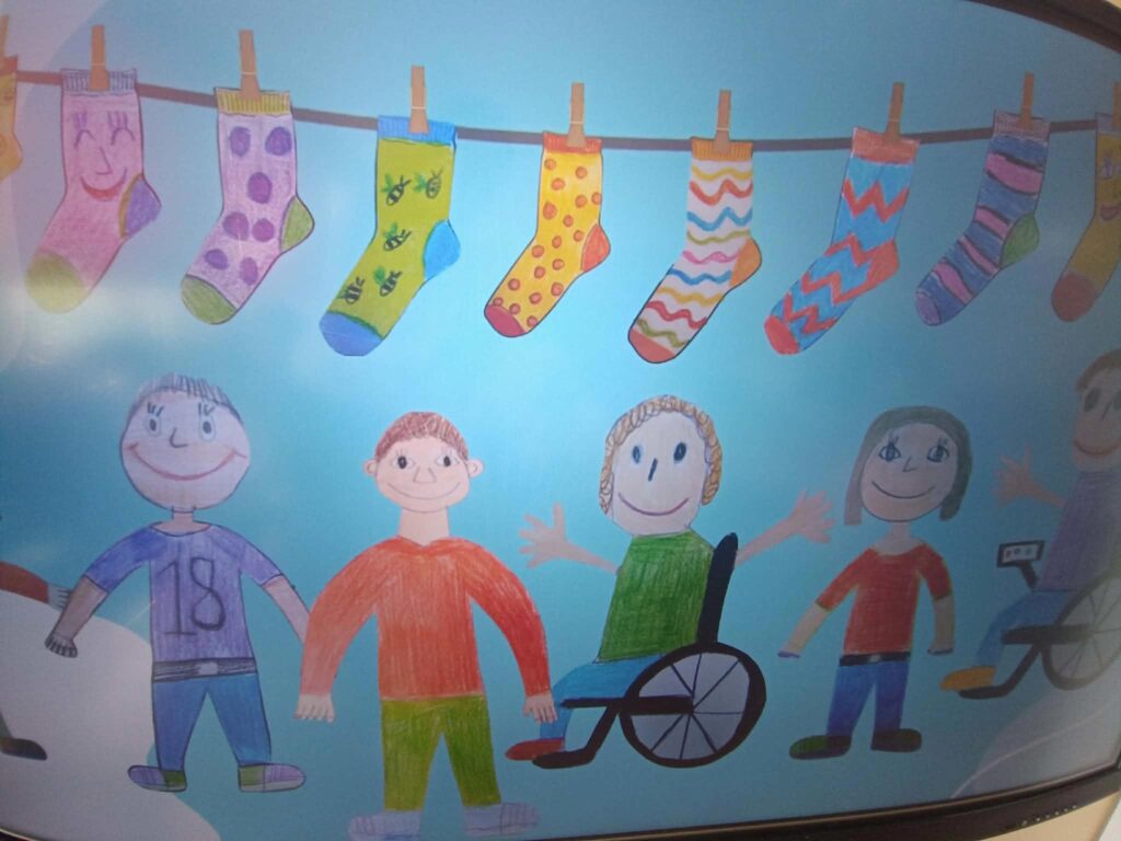 W piątek w zerówce obchodziliśmy Dzień kolorowej skarpetki, która jest symbolem Zespołu Downa, jako synonimu niedopasowania społecznego i genotypowego z jakim borykają się osoby z zespołem Downa. Dzieci poznały znaczenie słowa TOLERANCJA i już wiedzą, że inny nie znaczy gorszy.
