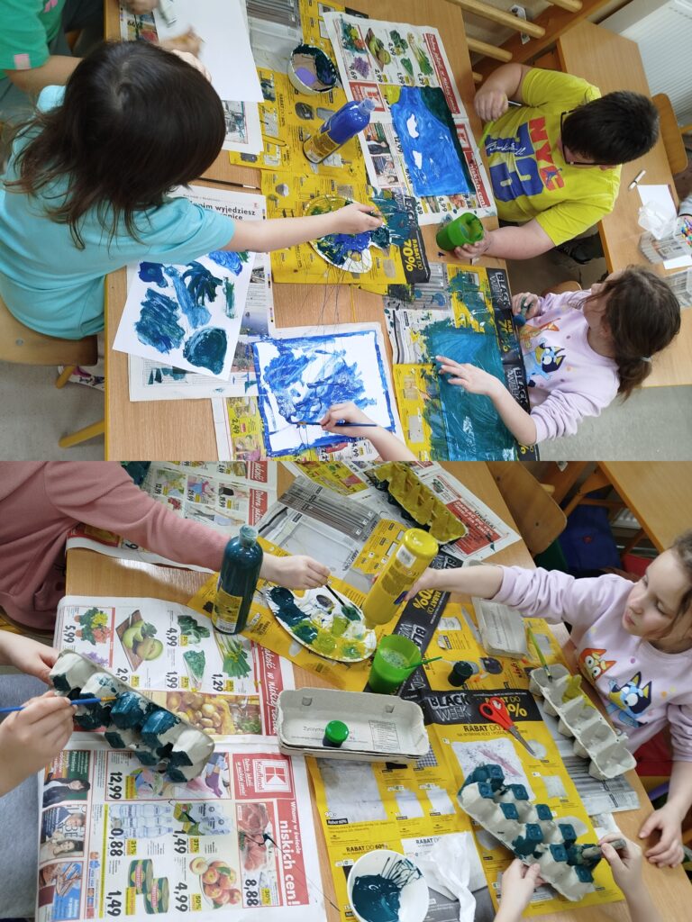 Na prośbę uczniów kontynuowaliśmy zajęcia z kalkomanią. Nie zabrakło też twórczych prac plastycznych z wykorzystaniem farb oraz nowych pisaków akrylowych, tworząc prace według własnych zainteresowań.