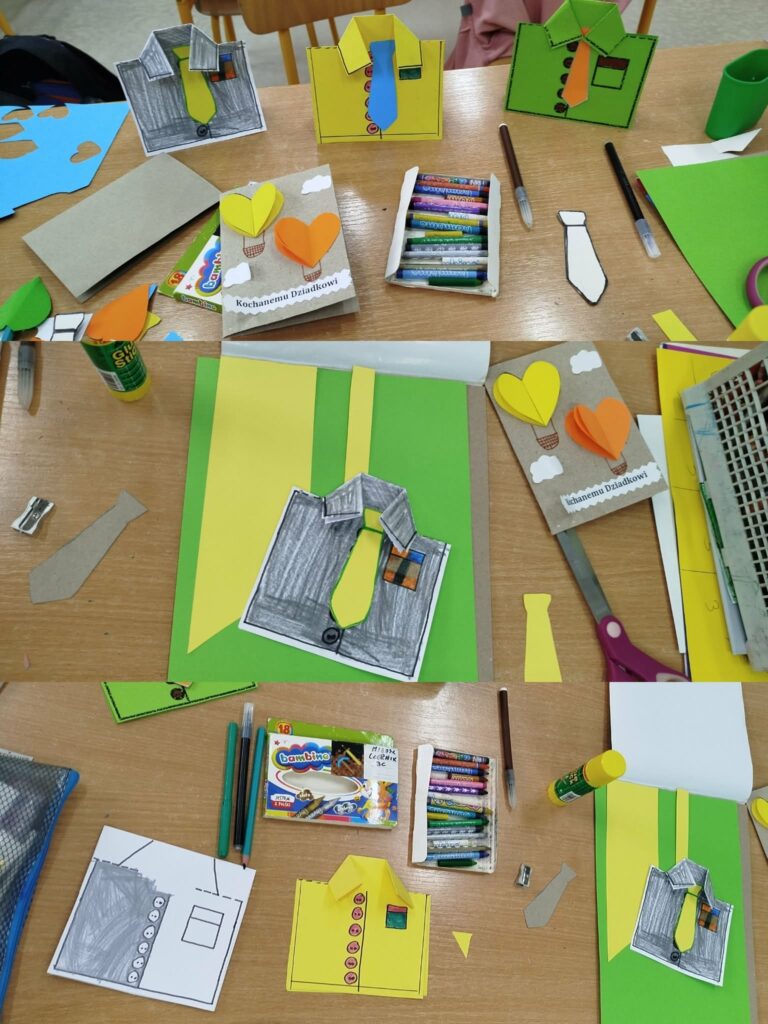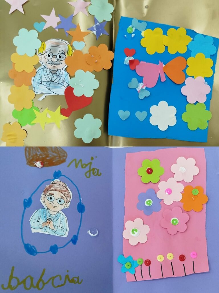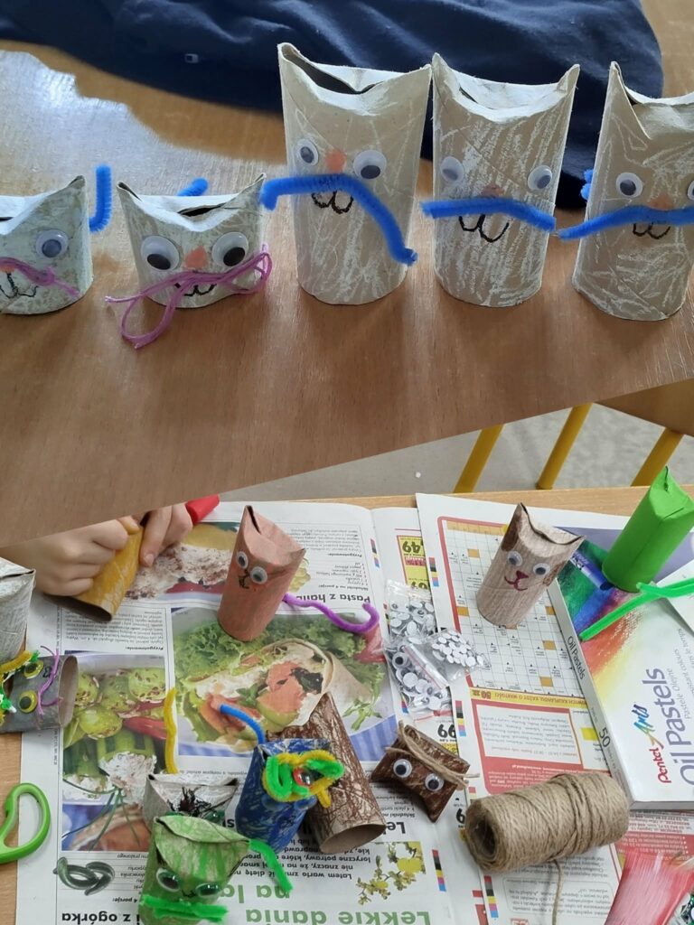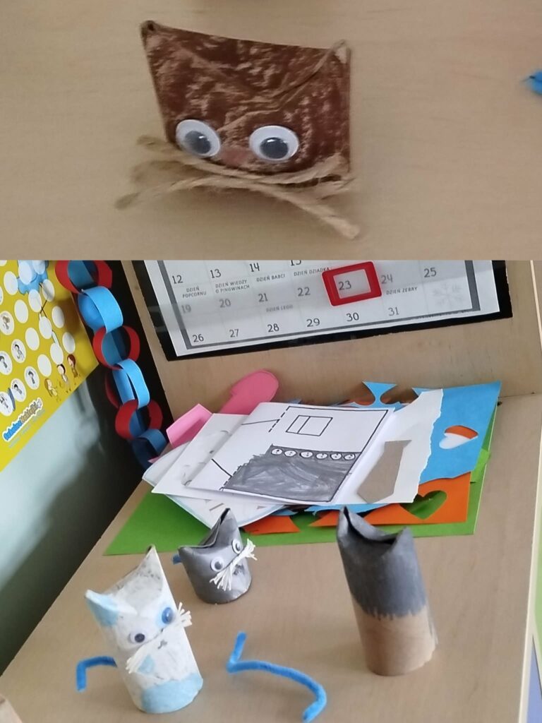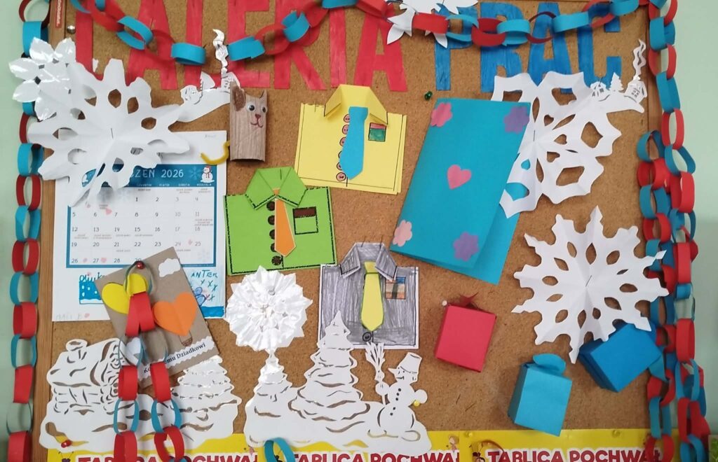 W grupach przeprowadziliśmy krótki konkurs wiedzy o styczniu, który zachęcał uczniów do aktywnego udziału i zdrowej rywalizacji. Podczas zajęć plastycznych powstały laurki oraz pudełka niespodzianki przygotowane z myślą o Dniach Babci i Dziadka, a także kreatywne kotki wykonane z papierowych rolek. W czasie swobodnych zabaw dzieci chętnie korzystały z NOWYCH klocków dostępnych w świetlicy, rozwijając swoją wyobraźnię i tworząc trójwymiarowe konstrukcje. Tydzień zakończył się wspólnym seansem filmu familijnego pt. „Królowa Śniegu”, który wprowadził wszystkich w zimowy, bajkowy nastrój.