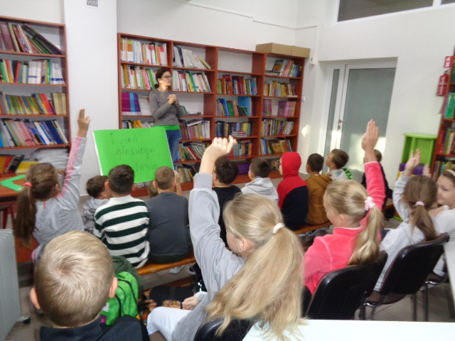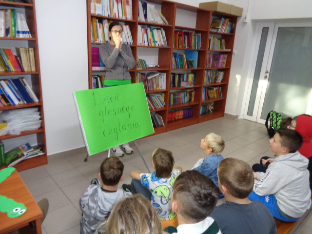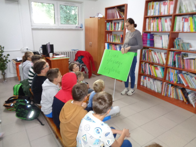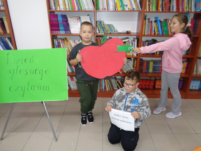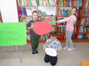 Z kolei 28 września obchodzimy Dzień Jabłka, dlatego przedszkolaki i uczniowie klas I-III odwiedzili bibliotekę szkolną, wysłuchali wierszy oraz zagadek na temat tych pysznych i zdrowych owoców. Starszy klasy wysłuchały fragmentów ciekawych powieści dla młodzieży, m.in.: „Magiczne Drzewo”, „Zwiadowcy”.