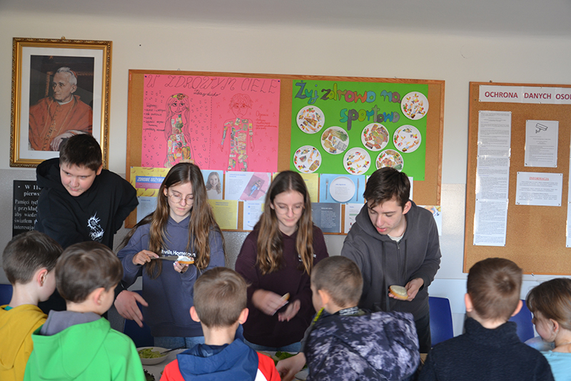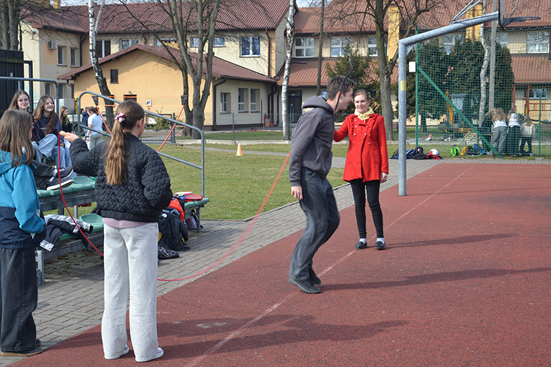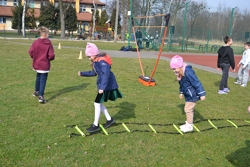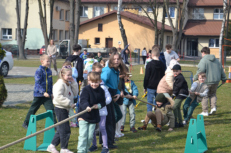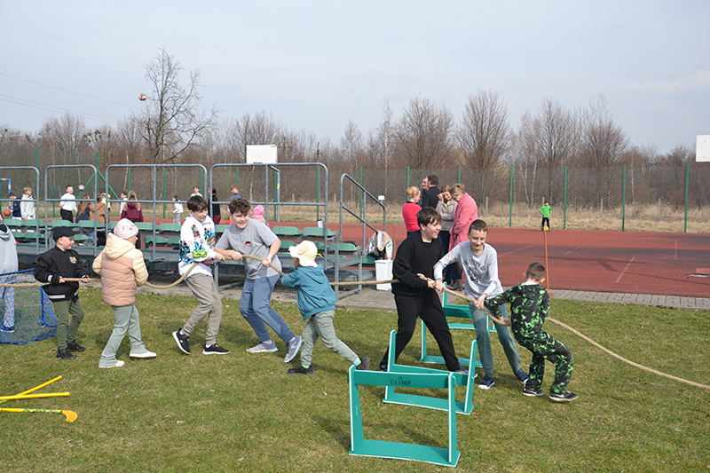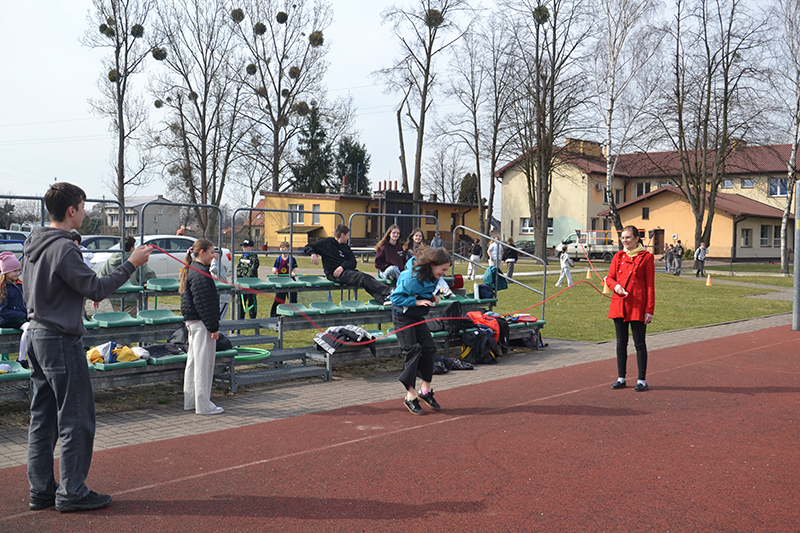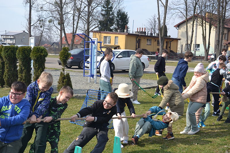 Uczniowie wraz z nauczycielem Łukaszem Jagodą na sportowo-rekreacyjnych terenach przyszkolnych przygotowali dla pozostałych klas wiele różnego rodzaju atrakcji sportowych. Sportowe gry zespołowe odbywały się na boisku szkolnym natomiast gry rekreacyjne na terenach zielonych. Uczniowie mogli brać udział w zabawach ruchowych takich jak: przeciąganie liny, badminton, gry i zabawy. Przygotowane atrakcje były wyśmienitą okazją do pożegnania zimy i przywitania tak długo oczekiwanej wiosny. Ponadto uczniowie zadbali o zdrowy poczęstunek po wyczerpujących zmaganiach sportowych. Ważnym elementem projektu było przekazanie informacji na temat pozytywnych aspektów aktywności fizycznej oraz zdrowego stylu życia. Przygotowana gazetka ścienna ilustrowała właściwe zbilansowanie diety oraz zachęcała do zdrowego odżywiania.