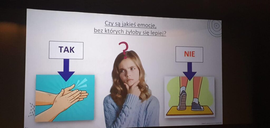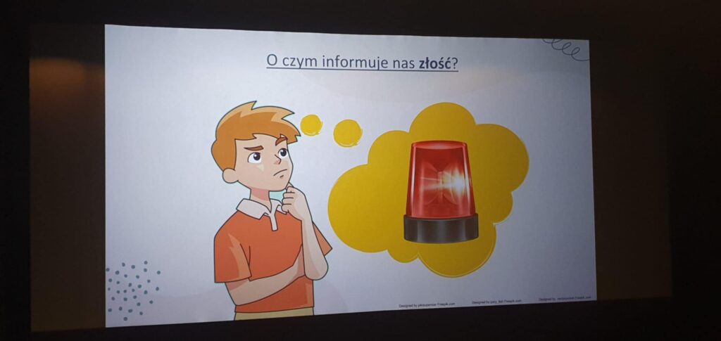 Podczas zajęć prowadząca w przystępny sposób opowiadała o tym, czym jest złość, skąd się bierze oraz jak można ją wyrażać, nie raniąc innych. Uczniowie aktywnie uczestniczyli w rozmowie, dzielili się swoimi doświadczeniami oraz poznawali praktyczne techniki radzenia sobie w trudnych sytuacjach, takich jak głębokie oddychanie, przerwa na ochłonięcie czy rozmowa o swoich uczuciach.