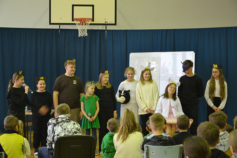Przygody naszych dzielnych koziołków obejrzała cała szkoła oraz przedszkolaki.