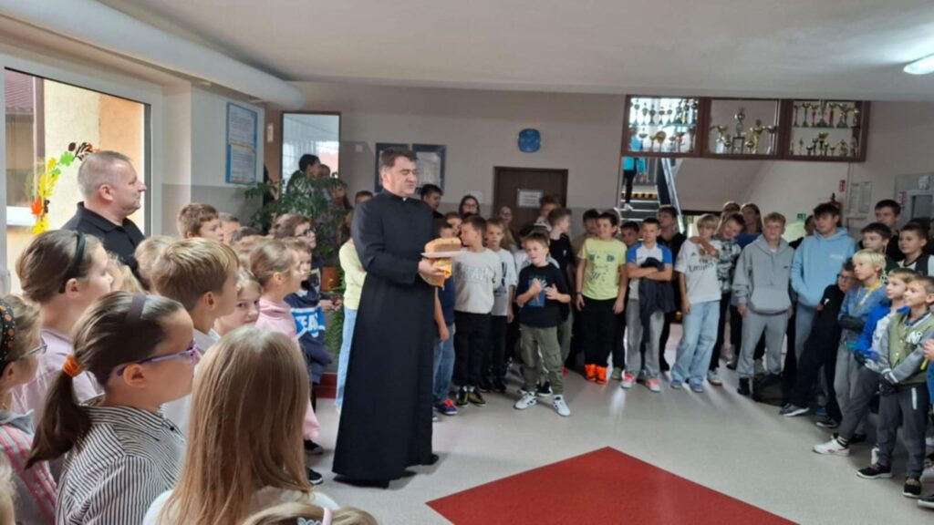 W obchody święta w naszej szkole aktywnie włączyło się SK PCK oraz Caritas. Podczas apelu ks. Piotr Wróbel uwrażliwiał dzieci na problem marnowania żywności i światowej walki z głodem, pani Monika Maca przygotowała z tej okazji okolicznościową gazetkę poświęconą tej tematyce, a pani Agnieszka Kolasa ogłosiła rozpoczęcie zbiórki produktów spożywczych o przedłużonym terminie ważności.