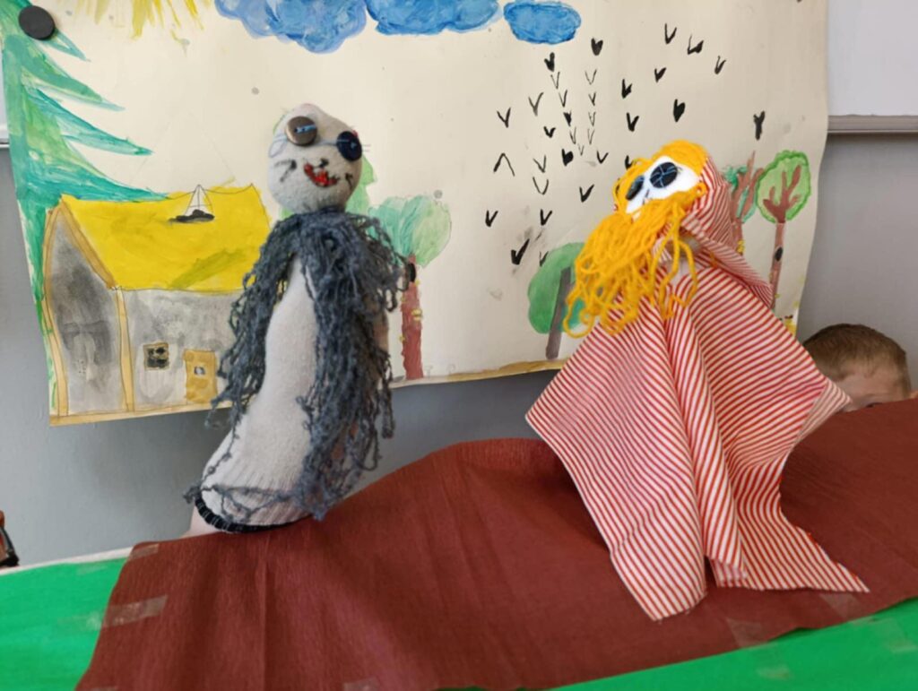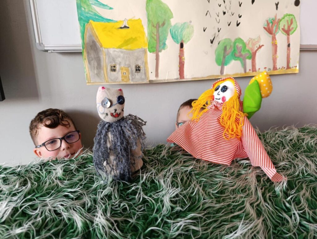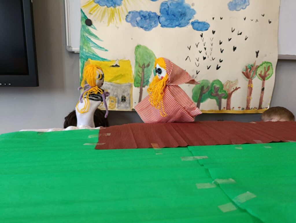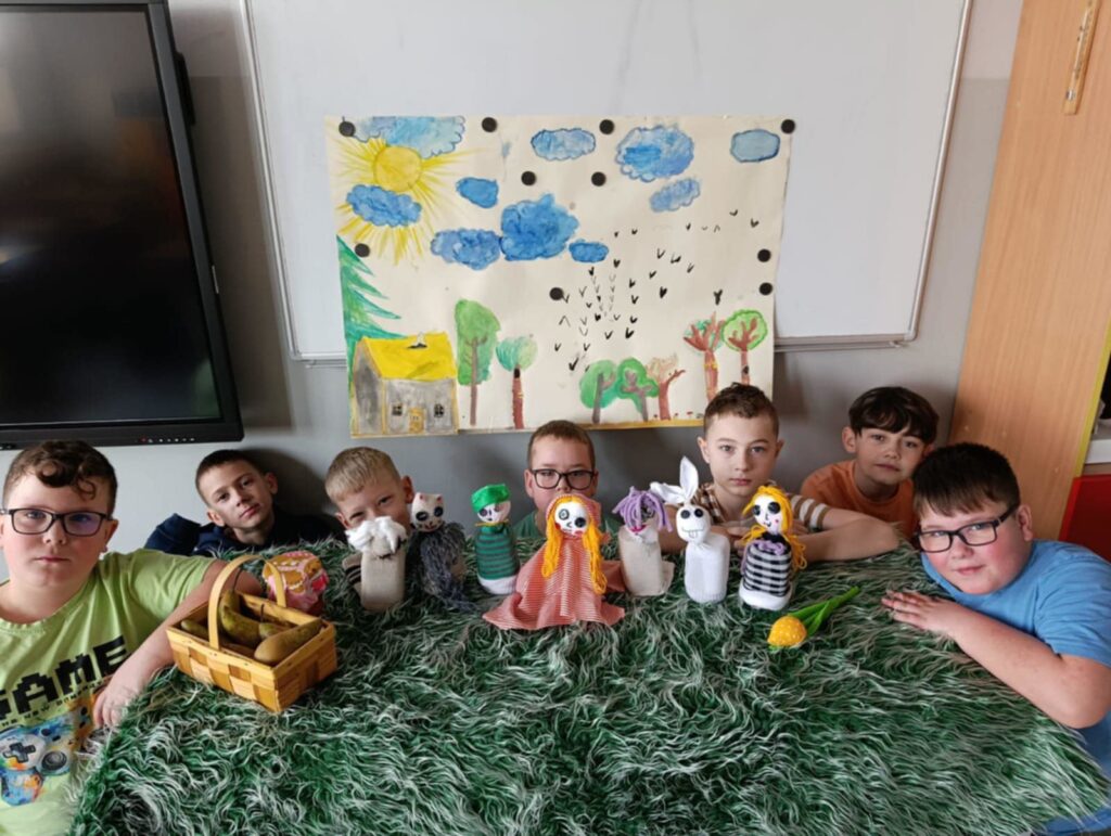 Uczniowie klasy II przygotowali teatrzyk pacynkowy do znanej bajki Braci Grimm pt. „Czerwony Kapturek”. Praca była zespołowa i polegała na przygotowaniu własnoręcznie pacynek, sceny oraz opracowaniu tekstów.
