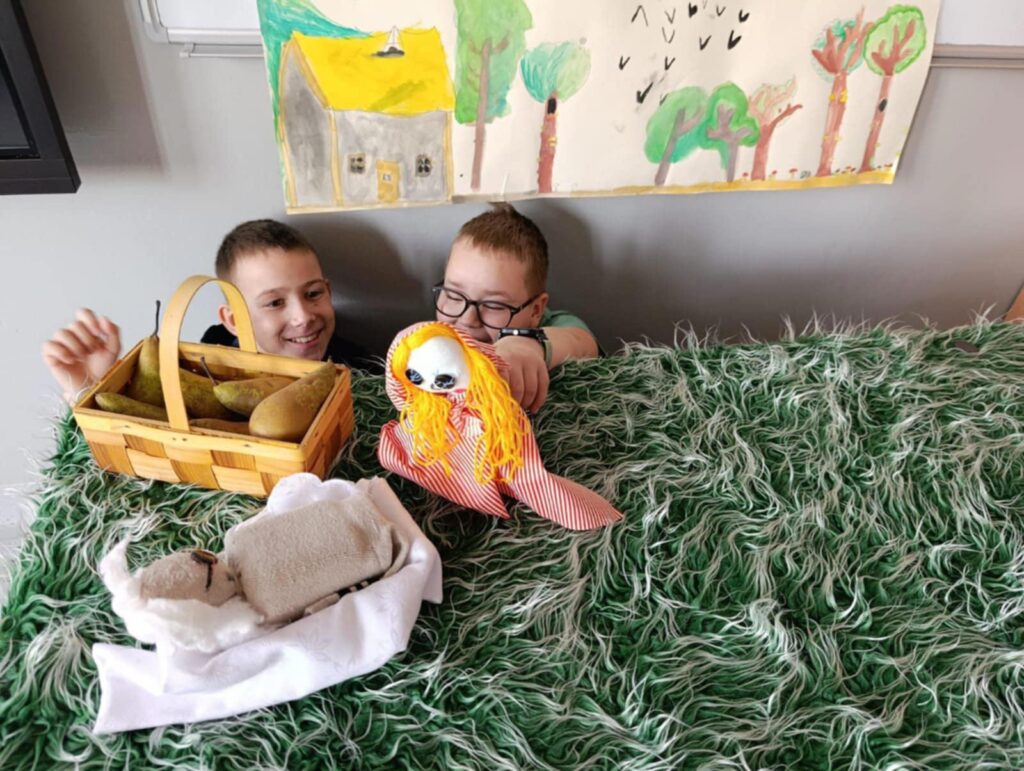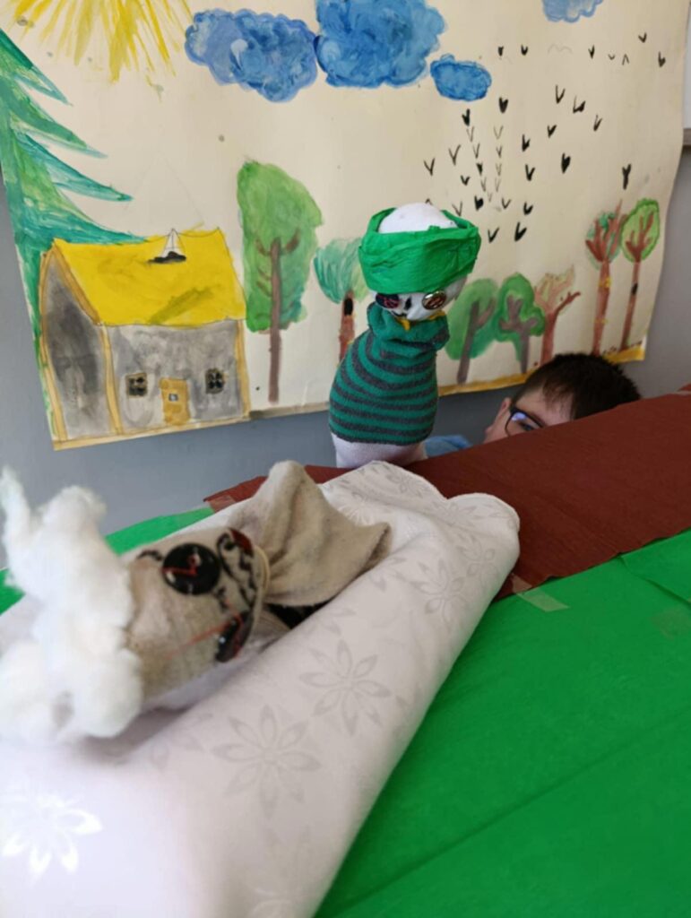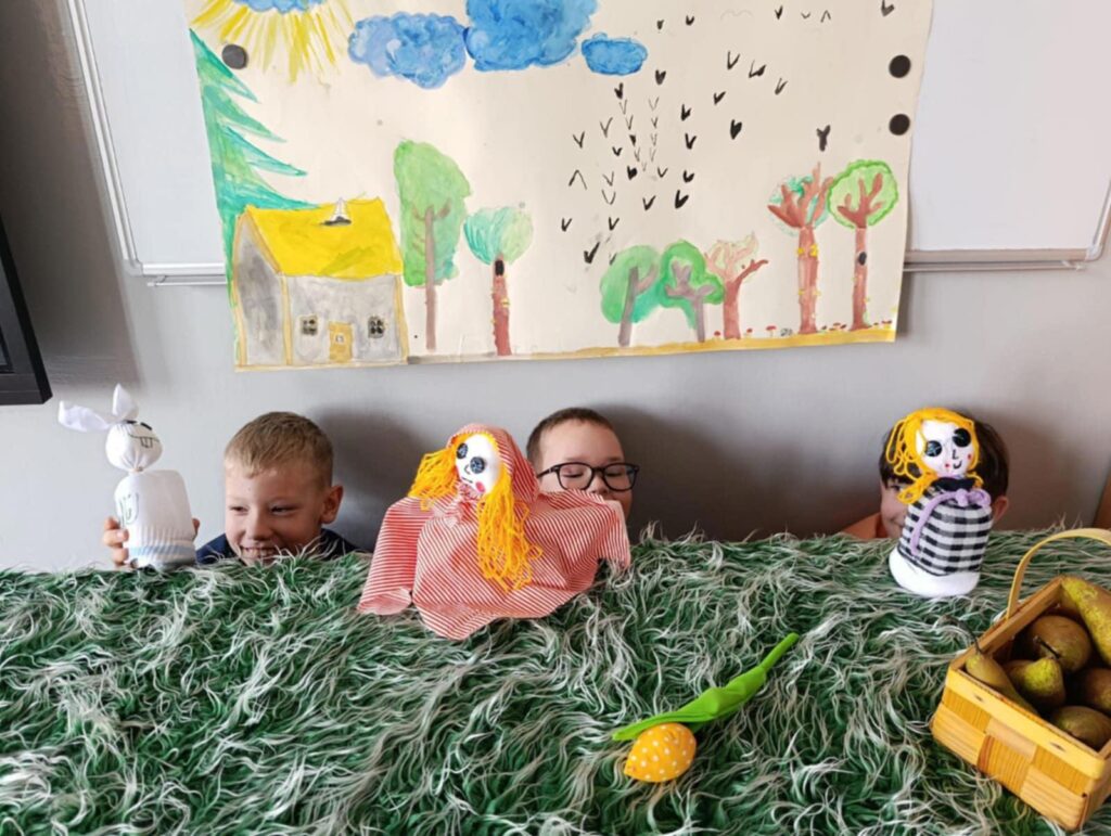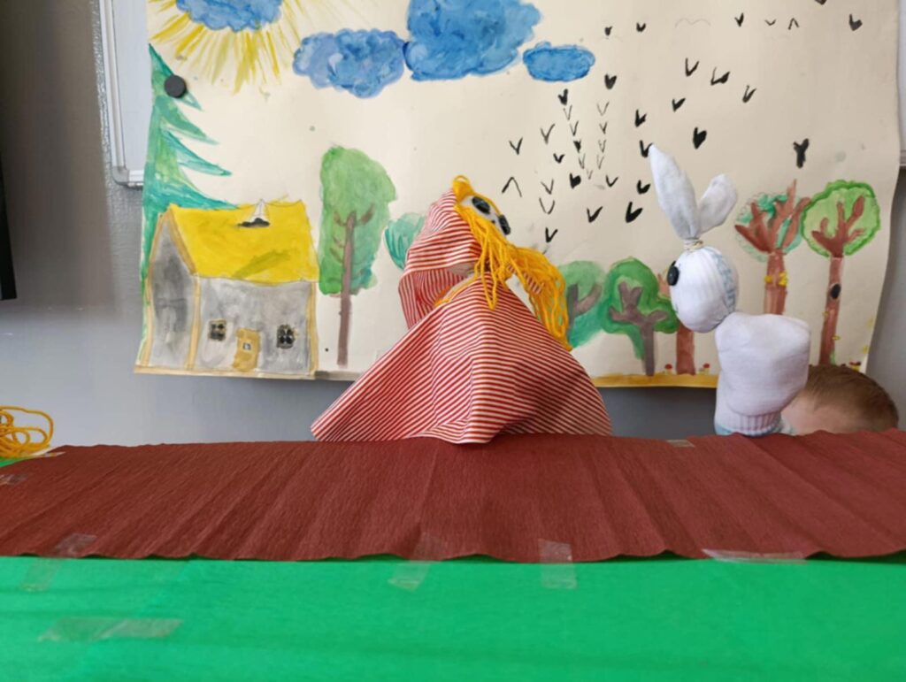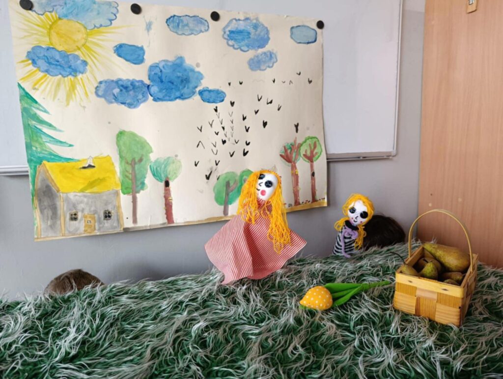 Uczniowie klasy II przygotowali teatrzyk pacynkowy do znanej bajki Braci Grimm pt. „Czerwony Kapturek”. Praca była zespołowa i polegała na przygotowaniu własnoręcznie pacynek, sceny oraz opracowaniu tekstów.
