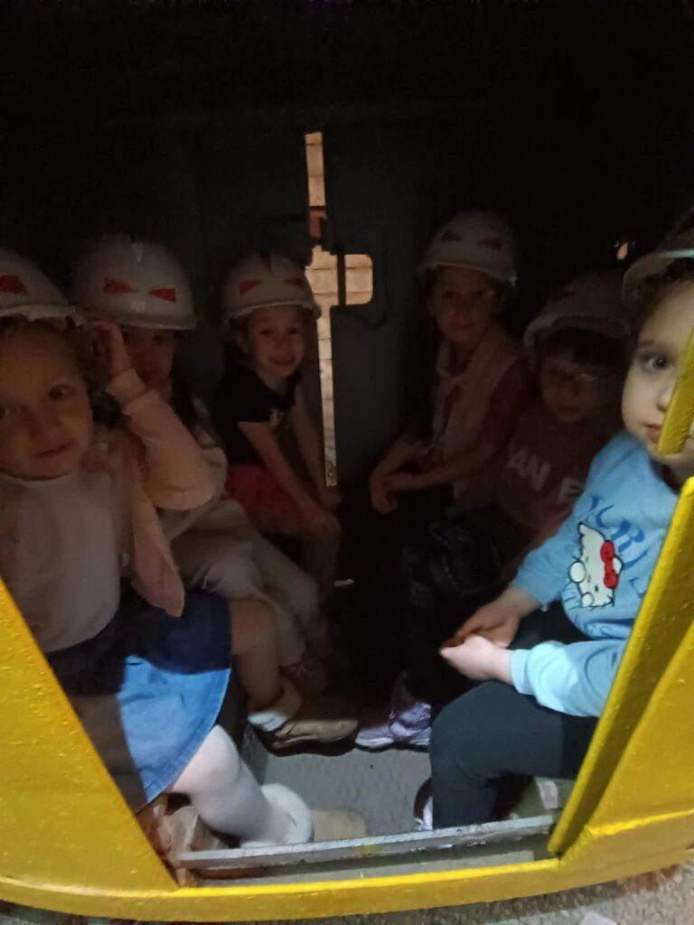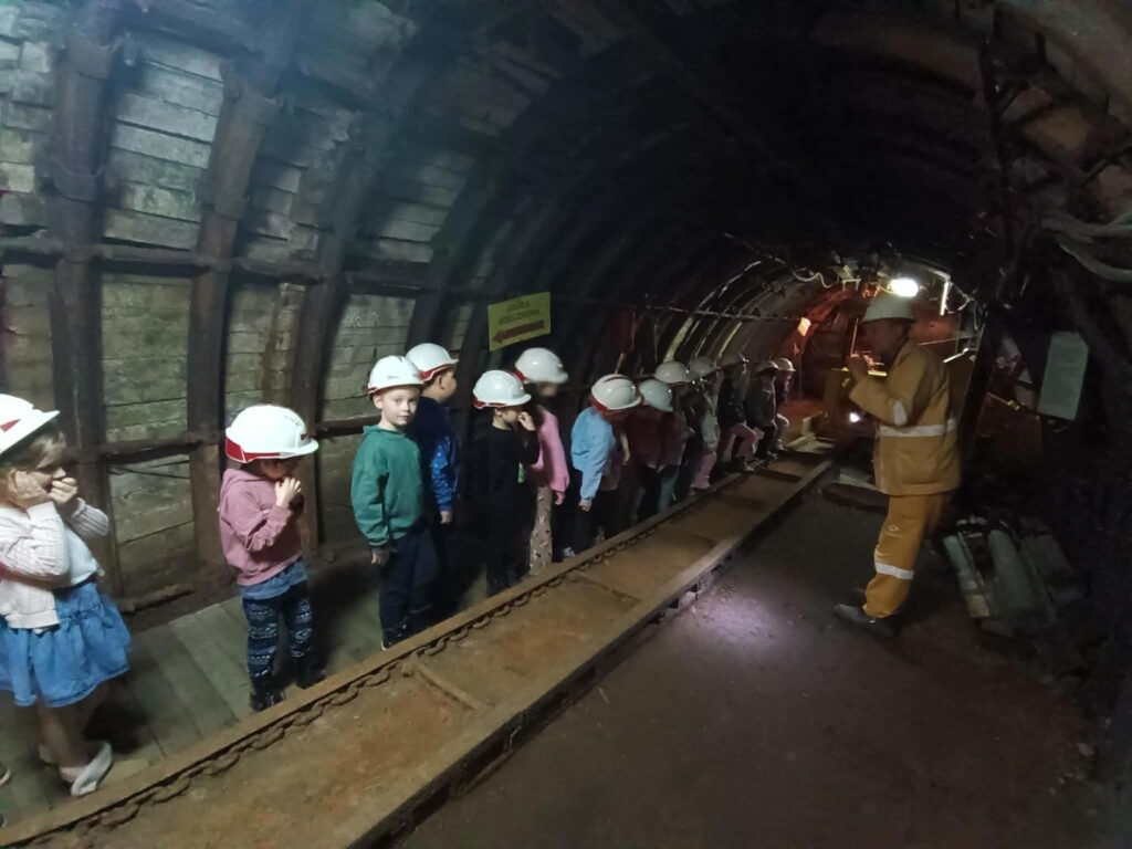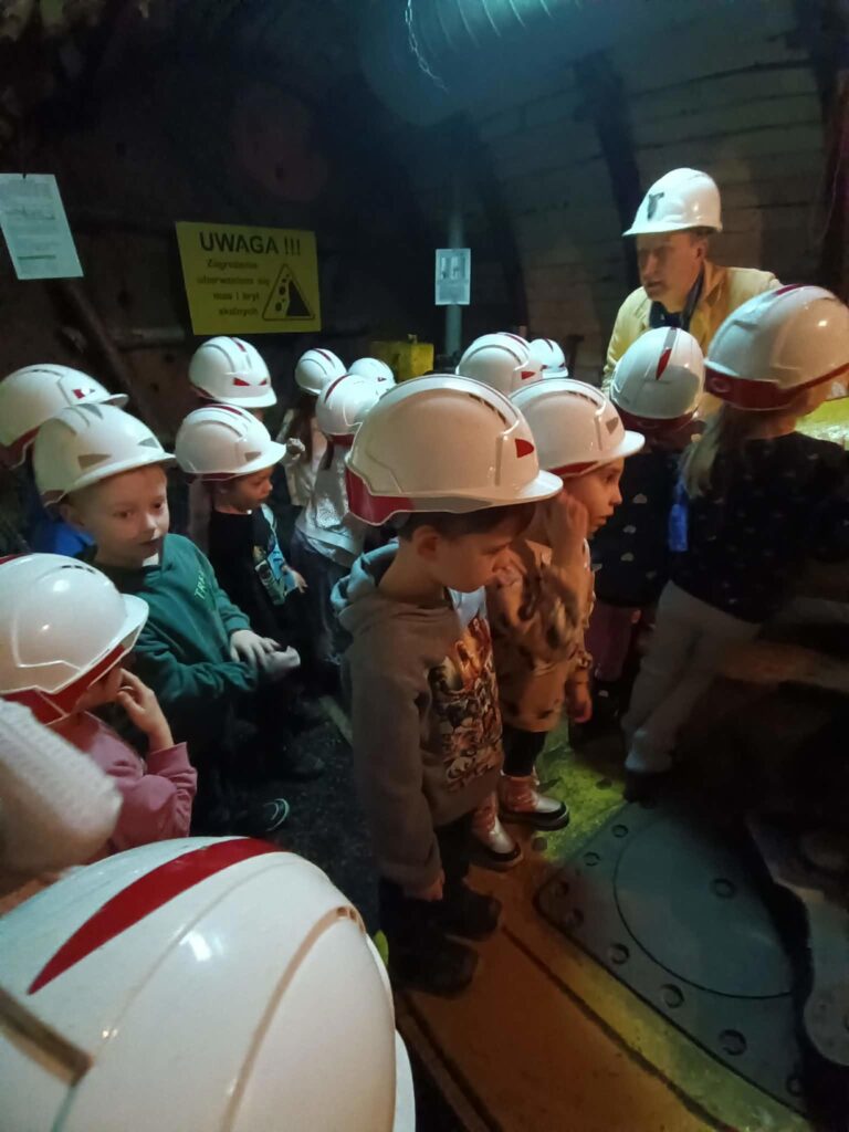 Podczas wycieczki dzieci dowiedziały się, na czym polega wydobycie węgla oraz jak wygląda codzienna praca górników pod ziemią. Z dużym zainteresowaniem oglądały maszyny wykorzystywane w kopalni, zobaczyły też, jak wygląda roboczy i galowy strój górniczy, a także dowiedziały się, jak górnicy pracowali dawniej, kiedy jeszcze w kopalni nie było nowoczesnych maszyn. Dzieci z uwagą słuchały opowieści o trudnym, ale bardzo ważnym zawodzie górnika.